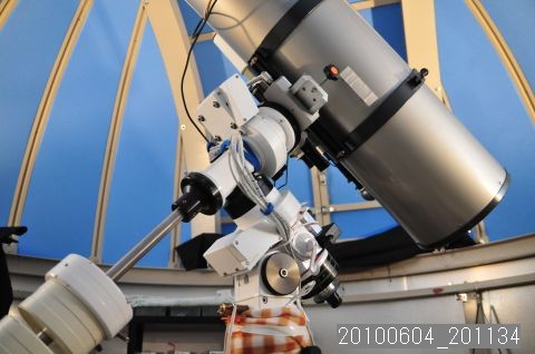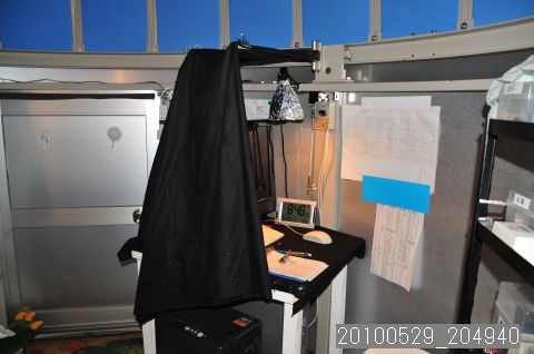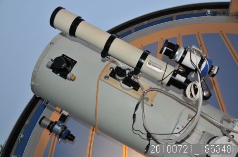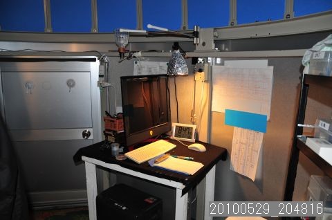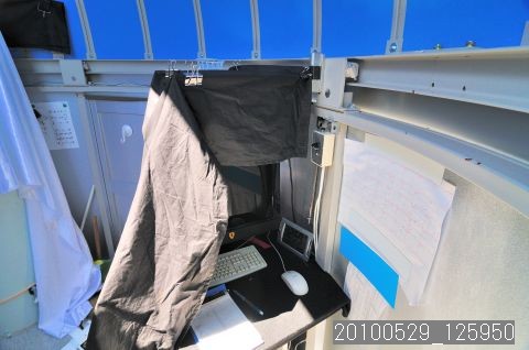 パソコンをドームの中に入れてから、画面の明るさには困るようになりました。何と言っても暗順応した眼には、どんなに輝度を落としてもまぶしく明るい画面です。撮影画像に影響があるかどうかを確かめる為に、ドームを閉めたままでシャッターを開いてみました。鏡筒の作りによって差がありますが、反射の主鏡の取り付けに大きく隙間のある40センチと25センチでは、向いている方向により明らかにカブリが生じていました。この為、この2つの鏡筒については、筒先にフードをとりつけ、主鏡側にスカートを巻いて対応しました。これは結構邪魔になります。